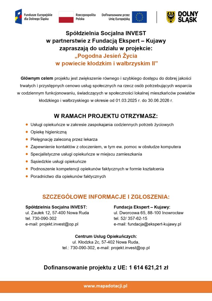 FORMULARZ ZGŁOSZENIOWY DO UDZIAŁU W PROJEKCIE:„Pogodna Jesień Życia w powiecie kłodzkim i wałbrzyskim II”